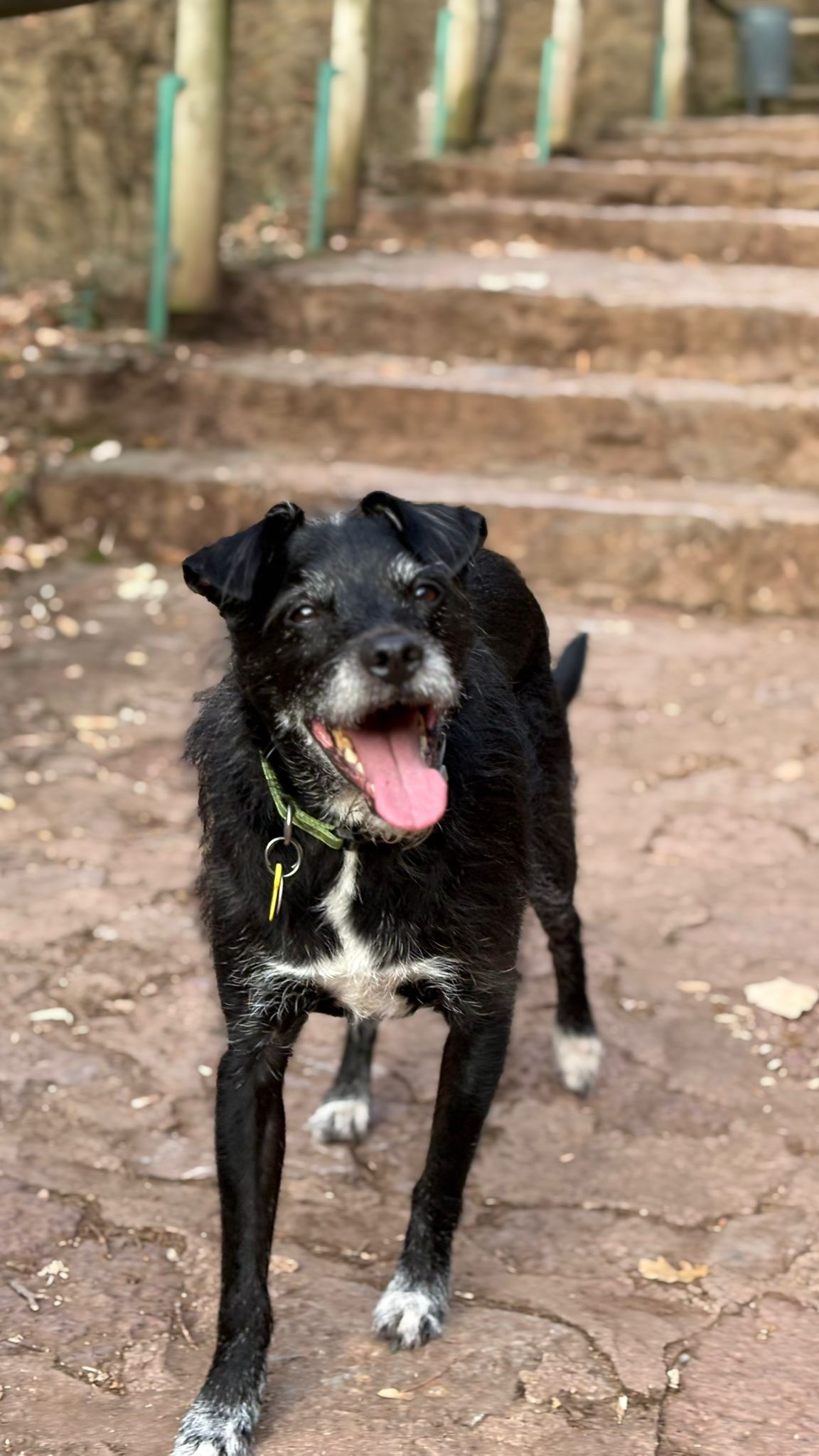 Perro de tamaño mediano negro, con patatitas blancas y estrella en el pecho blanca. Perdido en Arbanies, Huesca. Asustadizo, espantado por petardos. Contacto: 616193926